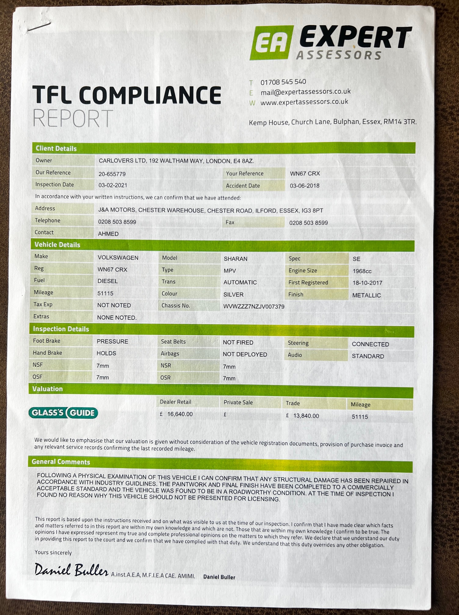 CAT S But have full Inspection Report.